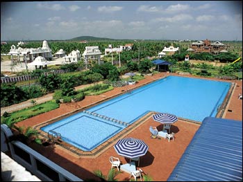6,000 sq. ft., swimming pool with landscaped gardens